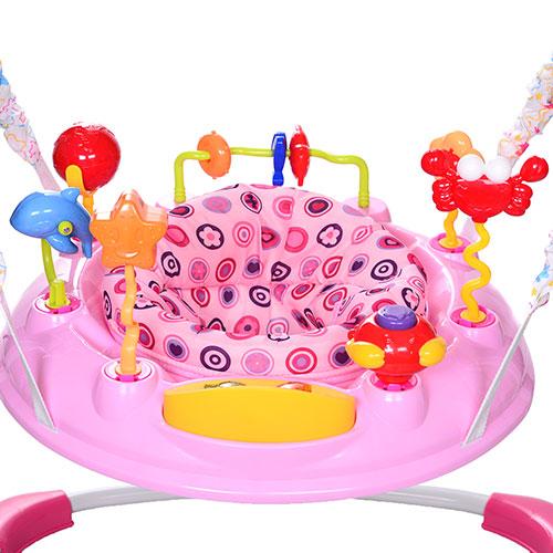 Дитячий стрибунець виготовлений у яскравому та барвистому стилі, що напевно сподобається дитині, ця модель обладнана ігровою панеллю з рухомими деталями, які сприяють поліпшенню дрібної моторики, стрибунок має м'яке поворотне сидіння, що забезпечує малюкові максимальний комфорт.