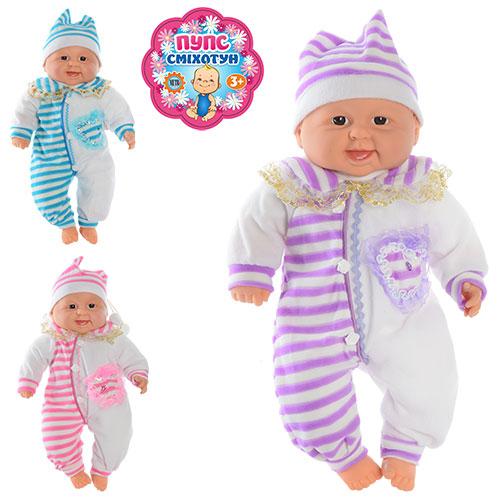 Пупс хохотун м'який музичний у смугастому вбранні на батарейці