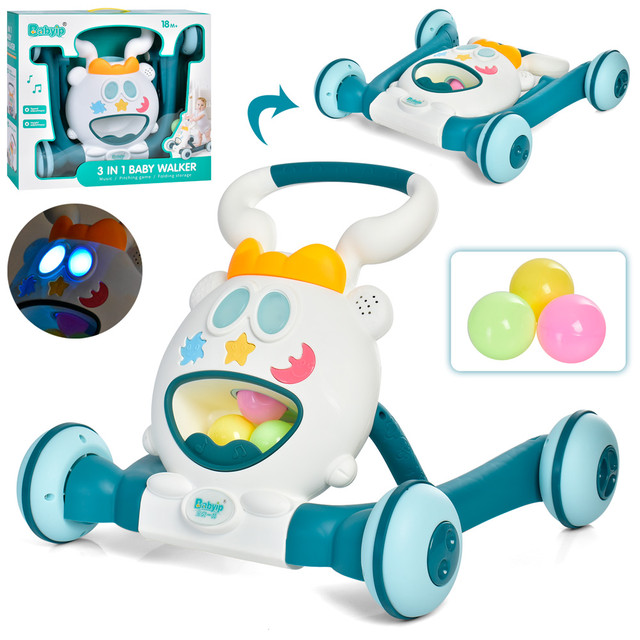 Яскраві пластикові ходунки на колесах. Мають безліч ігрових елементів, які розвивають дрібну моторику і уяву, підсвічування та звукові ефекти. Ходунки легко збираються, також мають таку конструкцію, яка сприяє більшій стійкості малюка, коли той ходитиме за допомогою них.