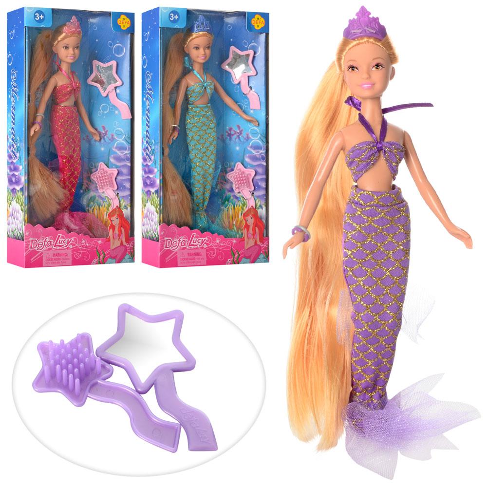 Лялька-русалка для дівчинки Defa Lucy 8236, довге волосся, гребінець, дзеркало, 3 кольори, 22 см