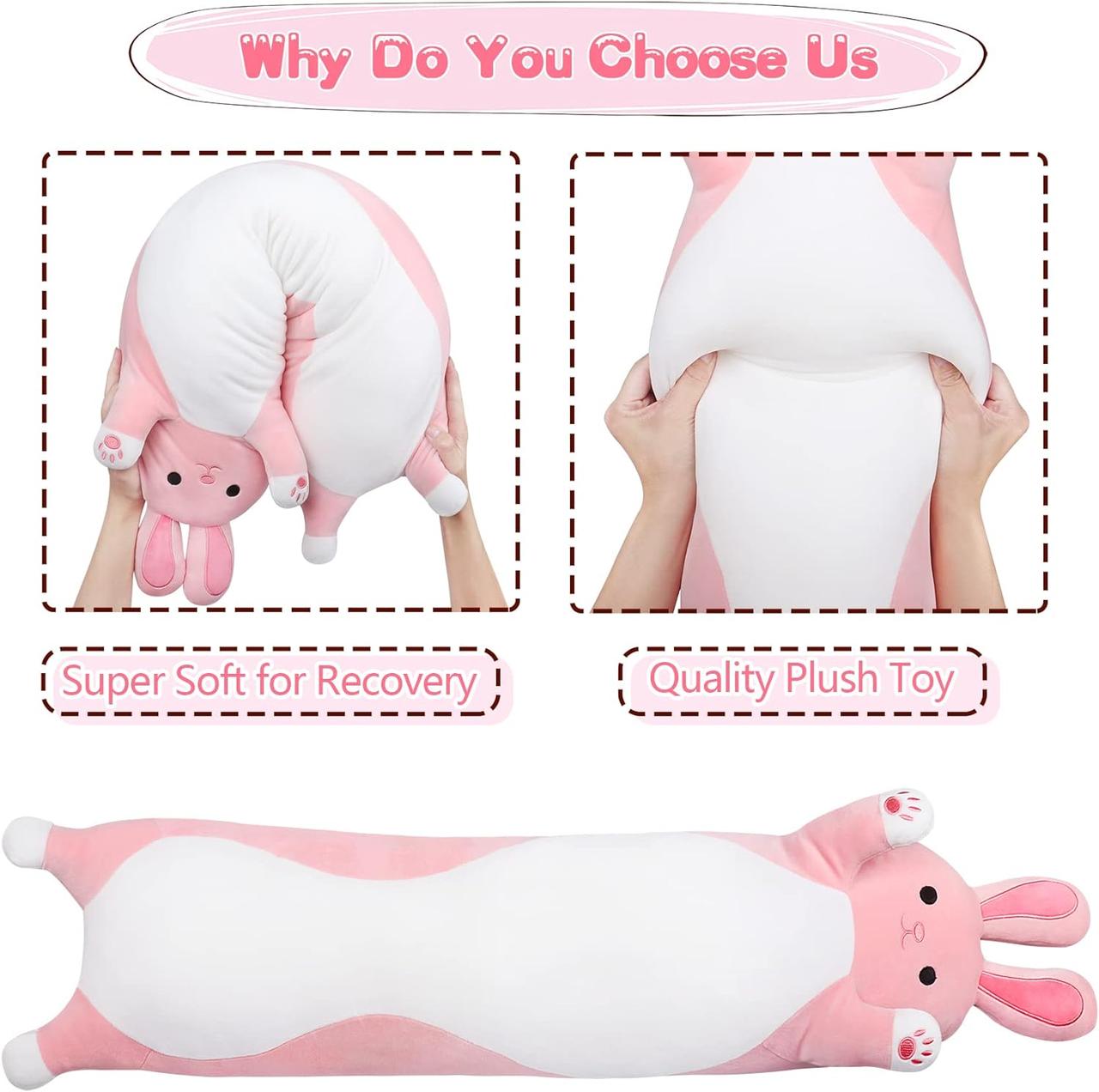 Подушка для сну у формі кролика виготовлена з екологічно безпечної м'якої плюшевої тканини + пуховий бавовняний наповнювач, дуже м'яка тканина, чарівна, зручна та гнучка. Завдяки своєму милому та реалістичному зовнішньому вигляду цей плюшевий кролик може супроводжувати вас або ваших друзів в один час. Всі погані емоції та робочий стрес зникнуть, коли ви обіймите подушку кролика!
